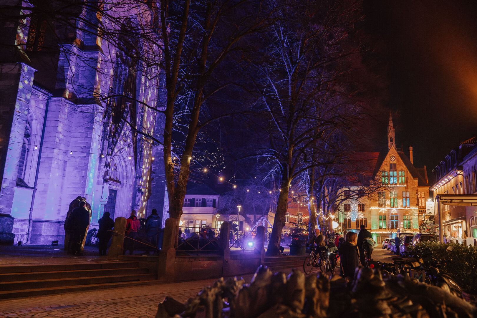 Rathaus, Dom und Johanniskirche erstrahlten in farbigem Licht und sorgten für eine besondere Atmosphäre in der Domstadt. Der Dom wurde an seiner Südseite mit wechselnden künstlerischen Motiven illuminiert, während das Rathaus mit weihnachtlichen Symbolen in Szene gesetzt wurde. Auch der Spaziergang zur Johanniskirche lohnte sich: Das Kirchengebäude wurde rundherum bunt angestrahlt und bildete einen weiteren visuellen Höhepunkt des Abends.