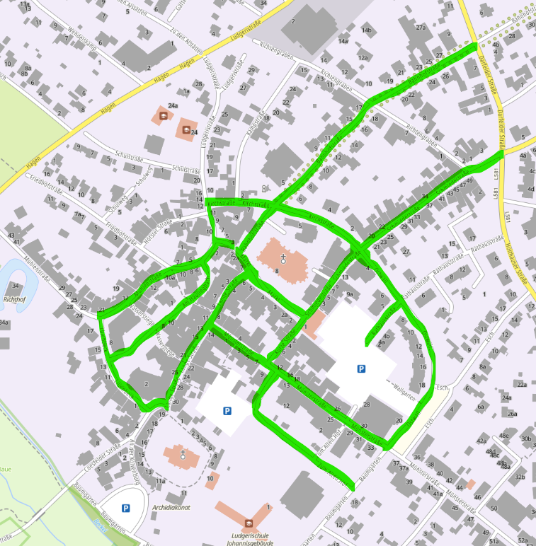 Das Glasverbot gilt ganztägig im Bereich der Innenstadt. Konkret umfasst es unter anderem die Lange Straße, Münsterstraße (bis Hausnummer 34), den Markt, Bahnhofstraße, Ludgeristraße, Mühlenstraße, Schmiedestraße, Kirchstraße, Ostwall, Rathausstraße sowie den Bereich Zum Alten Hof. Der genaue Geltungsbereich ist in einem Lageplan festgelegt.