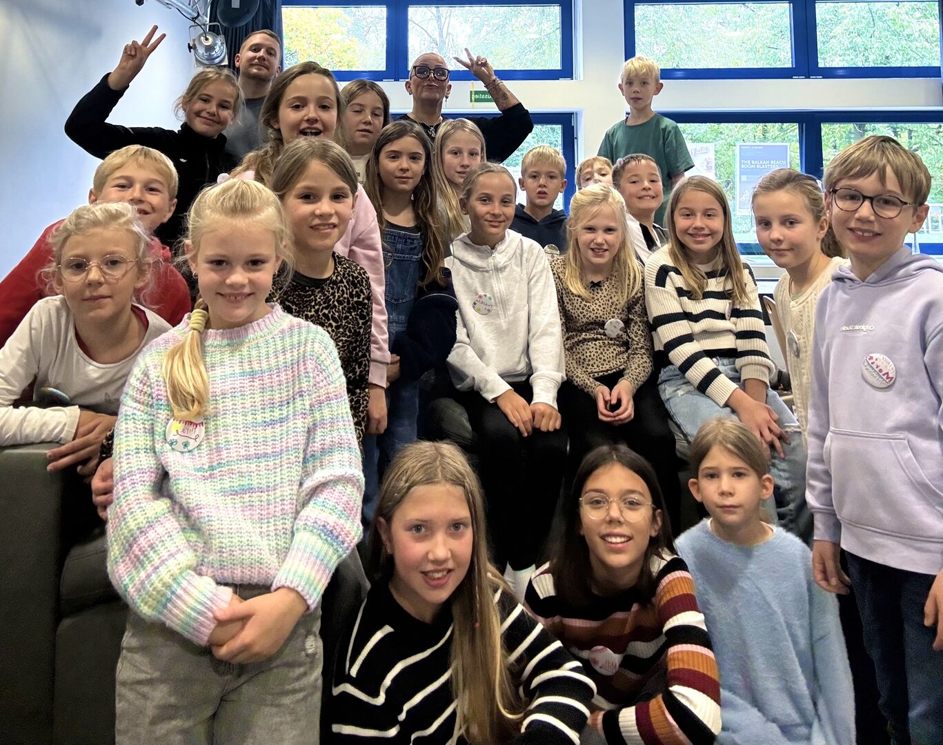 Bildunterschrift: Gruppenbild der Herbstwerkstatt im Jugendzentrum – 25 Kinder verbrachten dort kreative Ferientage voller Farbe, Fantasie und Teamgeist.